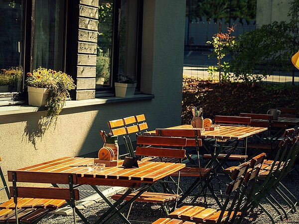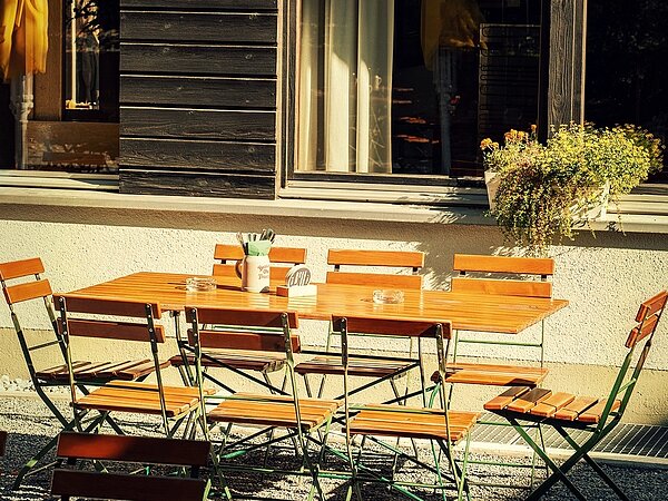 Bietet Raum für rund 80 Personen und lädt bei schönem Wetter zum Verweilen, Genießen und Zusammensitzen ein – mitten in Frastanz.
